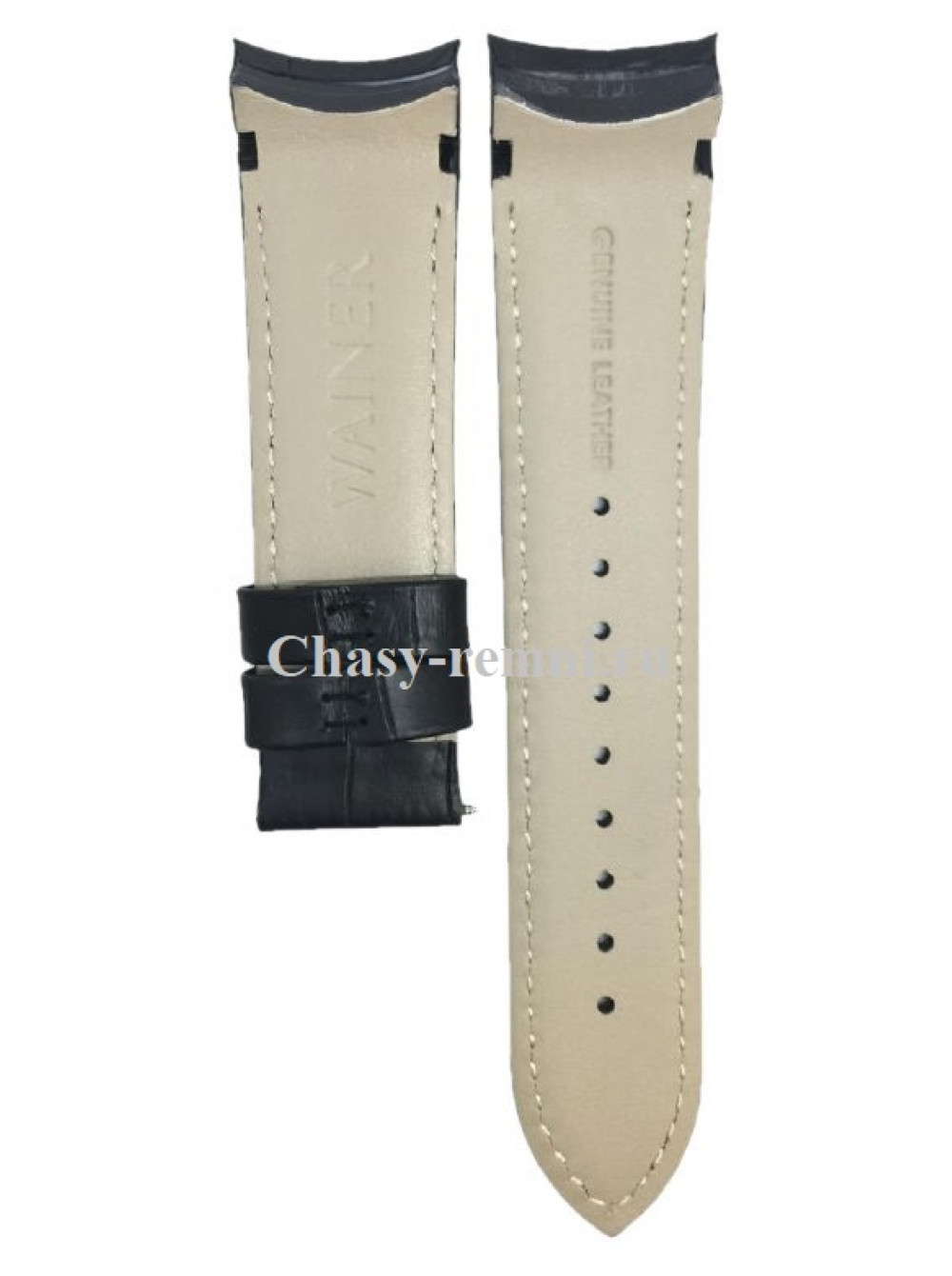 Оригинальный черный, кожаный ремешок WAINER, интегрированный под корпус, имитация крокодила, без клипсы. Размер входящий в корпус и на клипсу 24/22 мм.