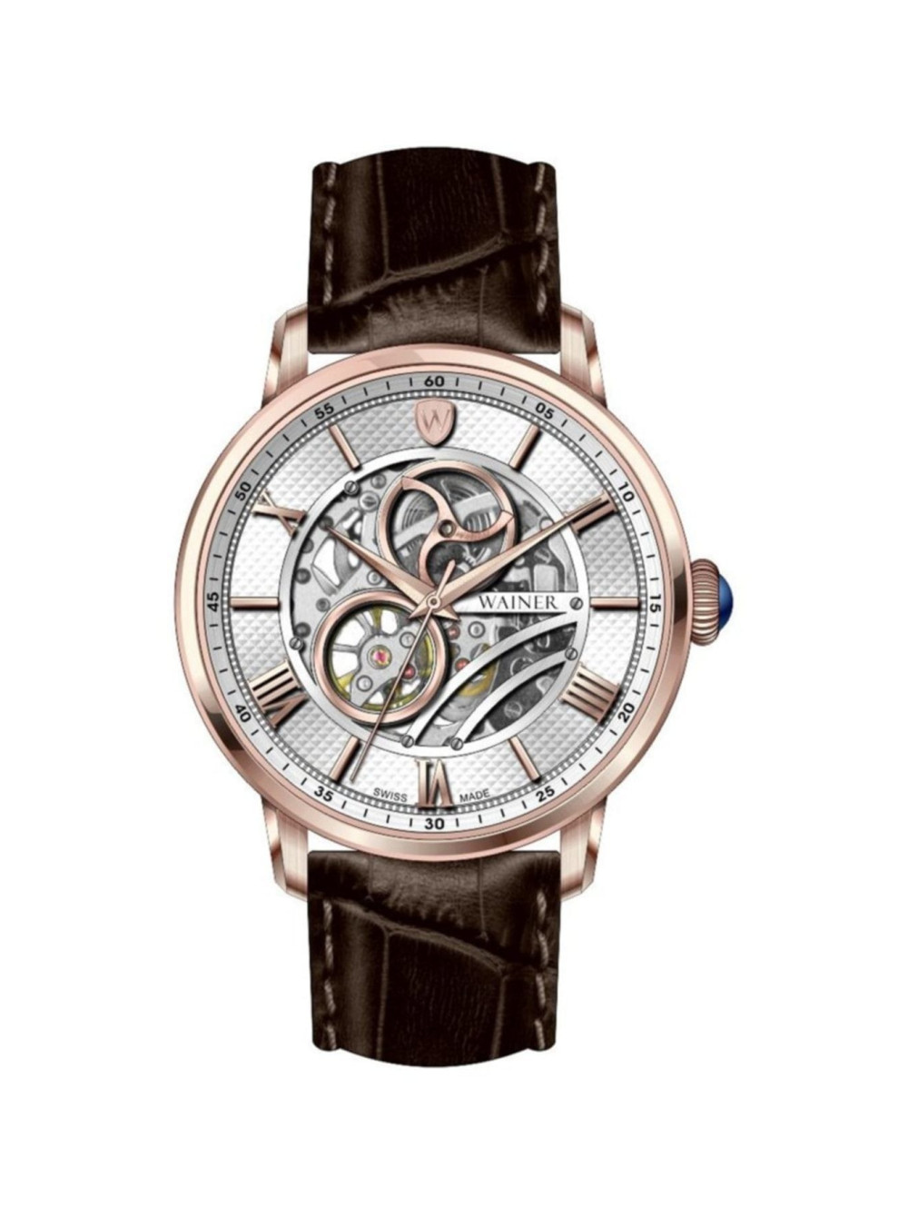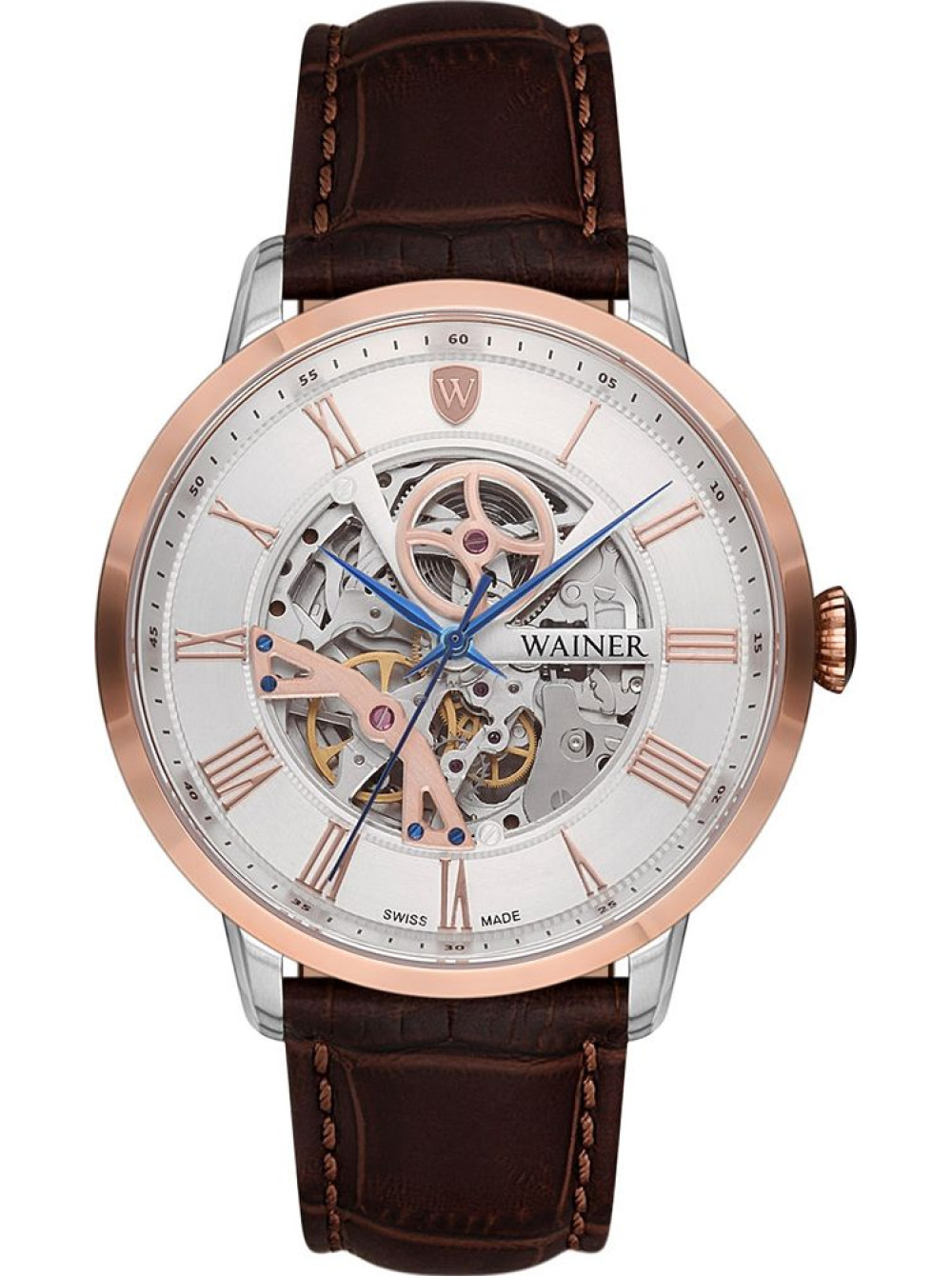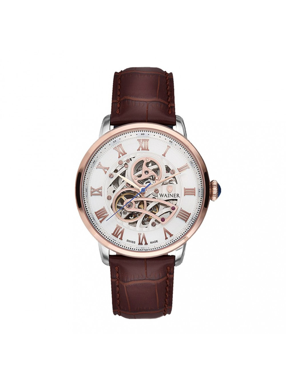 Оригинальный коричневый, кожаный ремешок WAINER, имитация крокодила, розовая пряжка. Размер входящий в корпус и на пряжку 22/20 мм.
