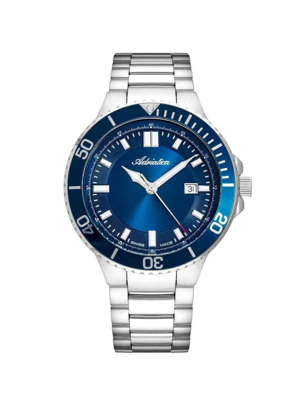 Швейцарские, наручные кварцевые часы ADRIATICA. Корпус из нержавеющей стали. Минеральное с сапфировым покрытием стекло. На браслете