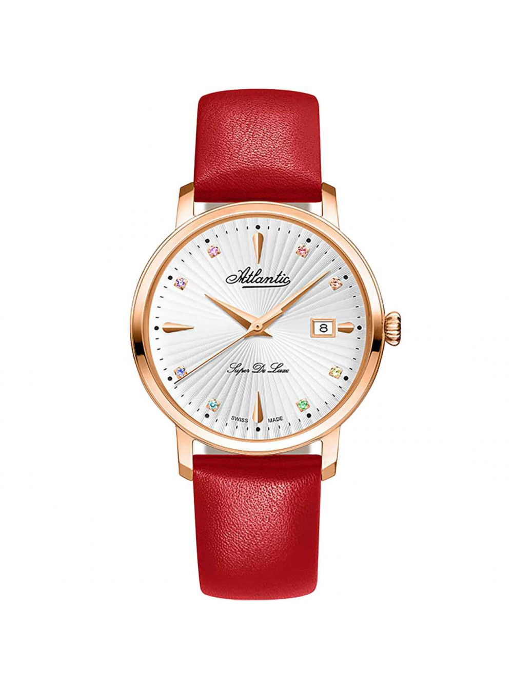 Оригинальные швейцарские кварцевые часы ATLANTIC. Коллекция Super De Luxe Precious Stones Rainbow Edition. Корпус из нержавеющей стали с PVD покрытием. Сапфировое стекло. Дата. На ремешке.