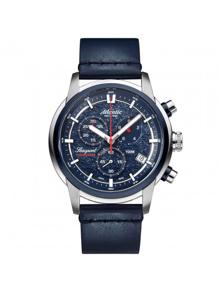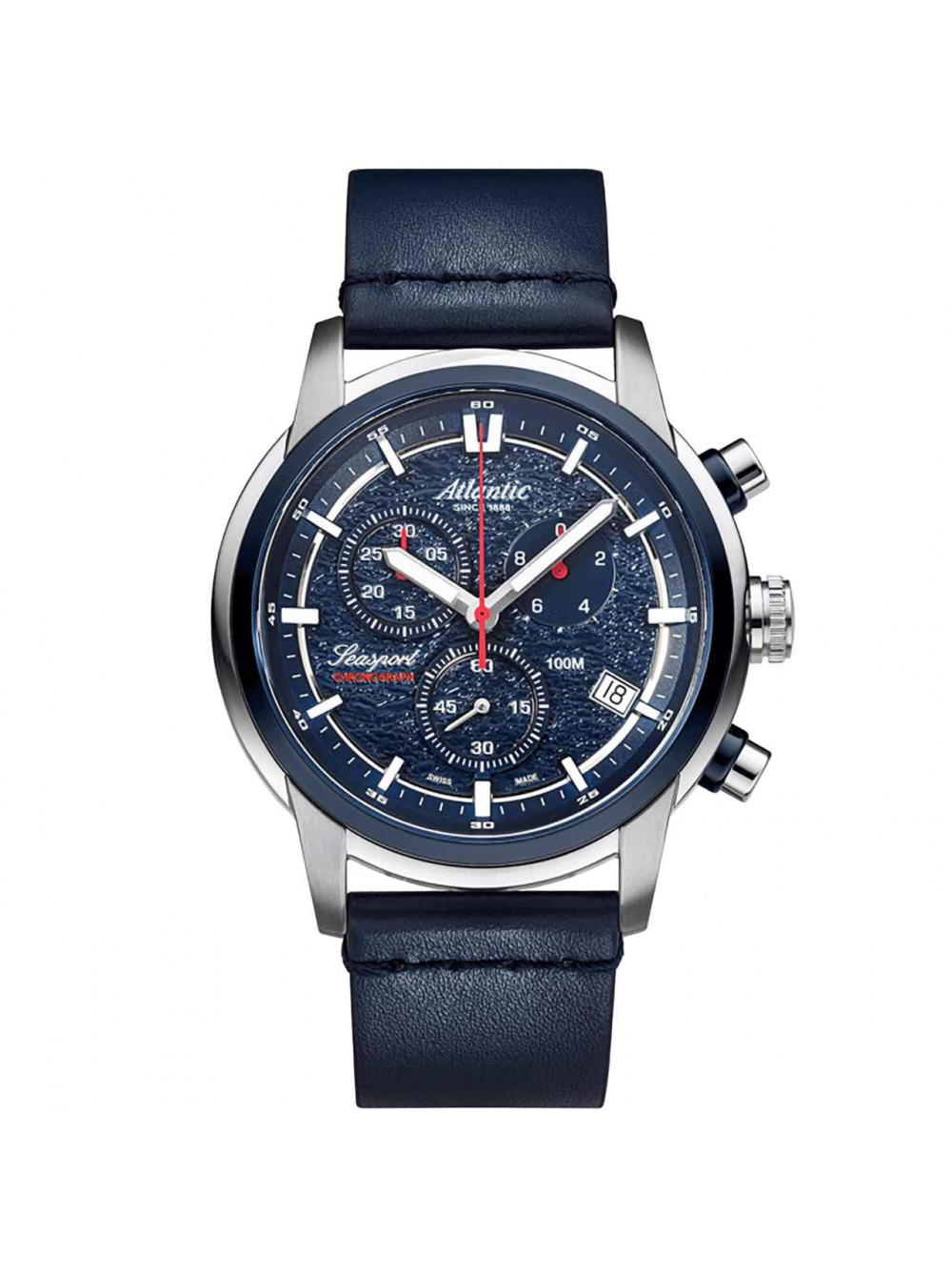 Оригинальные швейцарские кварцевые часы ATLANTIC. Коллекция Seasport. Корпус из нержавеющей стали. Сапфировое стекло. Дата, вынесенная секундная стрелка, хронограф. На ремешке.