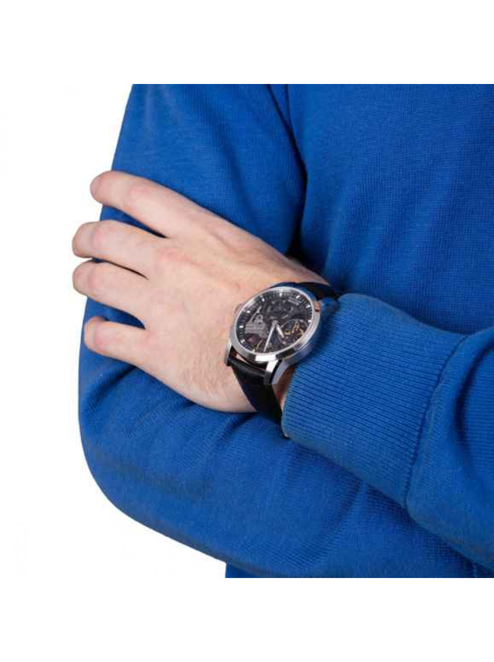 | Особенности | Декорированный механизм, Прозрачная задняя крышка, Люминесцентные стрелки, Воронёные винты, Открытый баланс |