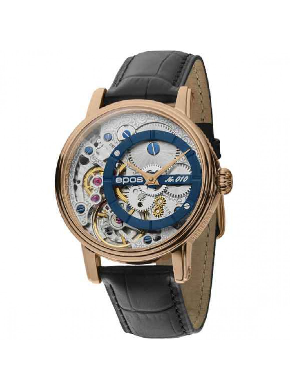 Швейцарские, наручные механические часы EPOS с ручным заводом. Коллекция Oeuvre d'art Limited Edition. Декорированный механизм, лимитированная серия, скелетон. Корпус из нержавеющей стали. Сапфировое стекло. На ремешке