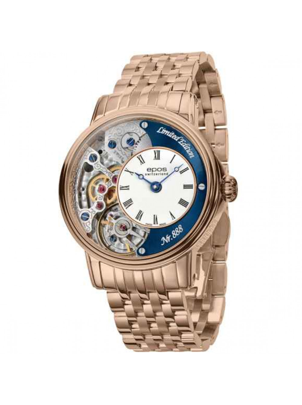 Швейцарские, наручные механические часы EPOS с ручным заводом. Коллекция Oeuvre d'art Limited Edition. Декорированный механизм, лимитированная серия, открытый баланс. Корпус из нержавеющей стали. Сапфировое стекло. На браслете