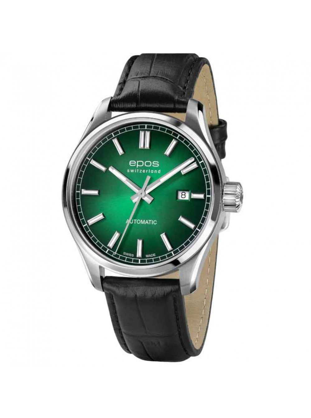 Швейцарские, наручные механические часы EPOS с автоподзаводом. Коллекция Passion. Декорированный механизм, прозрачная задняя крышка, люминесцентные стрелки и метки. Корпус из нержавеющей стали. Сапфировое стекло. На ремешке.
