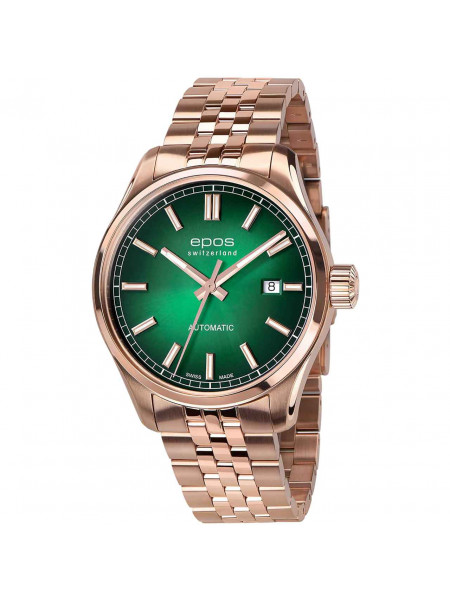 Швейцарские, наручные механические часы EPOS с автоподзаводом. Коллекция Passion. Прозрачная задняя крышка, люминисцентные стрелки. Корпус из нержавеющей стали. Сапфировое стекло. На браслете.