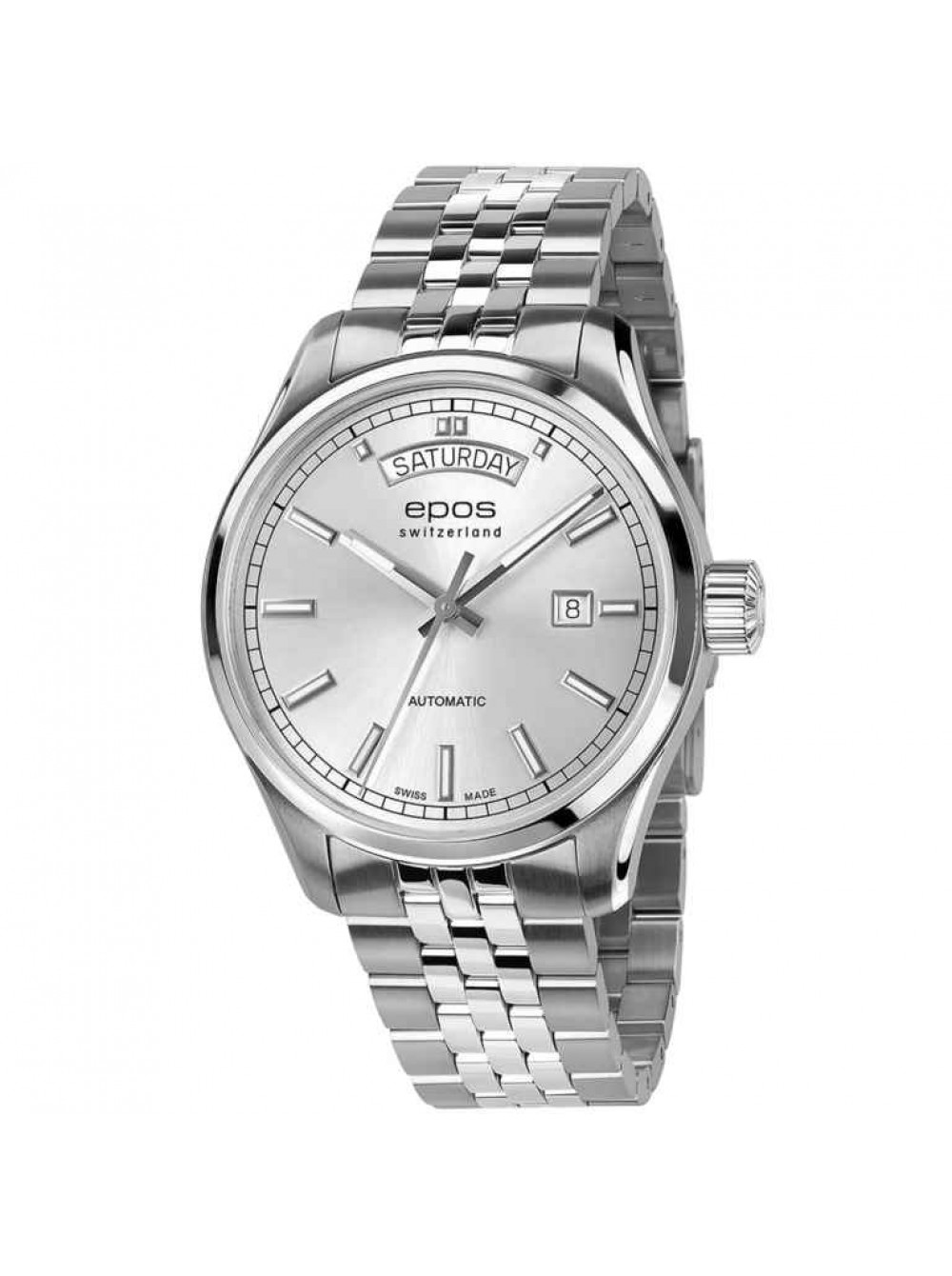 Швейцарские, наручные механические часы EPOS с автоподзаводом. Коллекция Passion. Прозрачная задняя крышка, люминисцентные стрелки. Корпус из нержавеющей стали. Сапфировое стекло. На браслете.