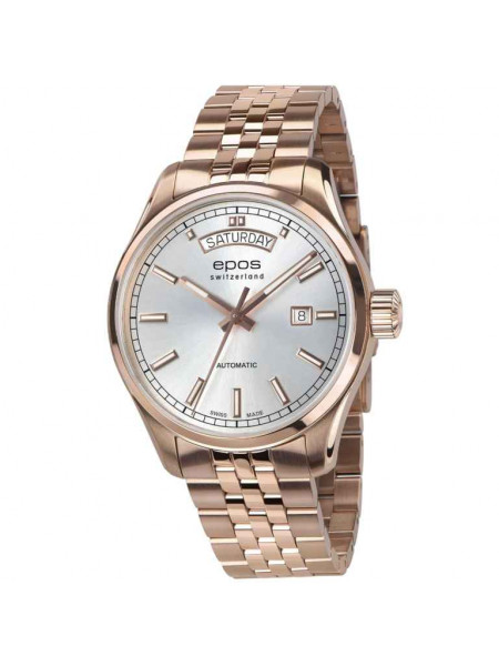 Швейцарские, наручные механические часы EPOS с автоподзаводом. Коллекция Passion. Прозрачная задняя крышка, люминисцентные стрелки. Корпус из нержавеющей стали. Сапфировое стекло. На браслете.
