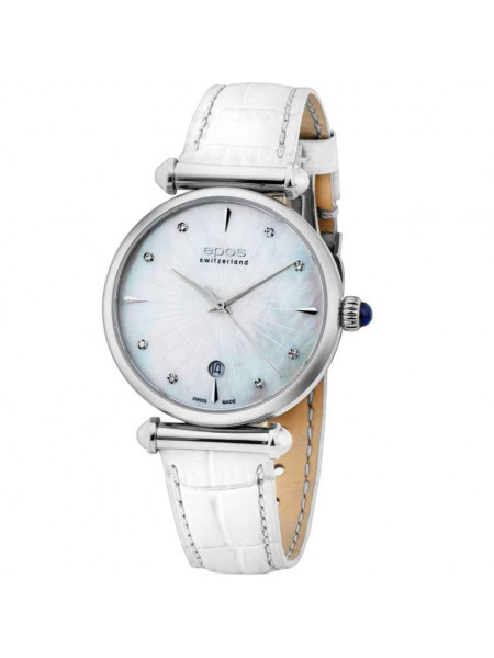 Швейцарские, наручные кварцевые часы EPOS. Цвет циферблата - перламутр. Дата. Коллекция - Ladies Quartz. Корпус из нержавеющей стали. Сапфировое стекло. На ремешке