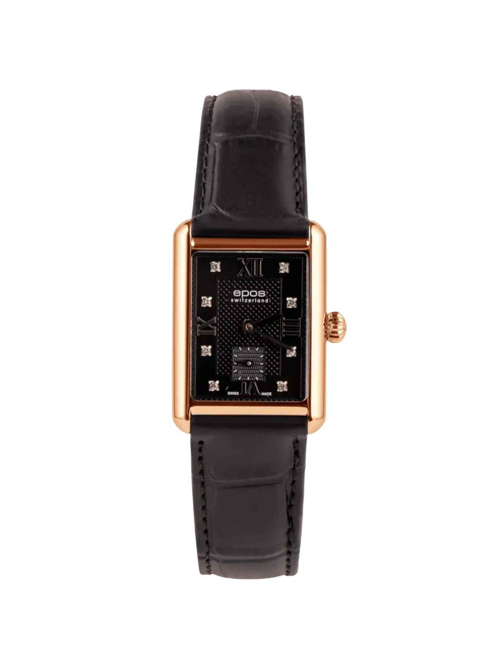 Швейцарские, наручные кварцевые часы EPOS. Вынесенная секундная стрелка. Корпус из нержавеющей стали с PVD покрытием. Сапфировое стекло. На ремешке.