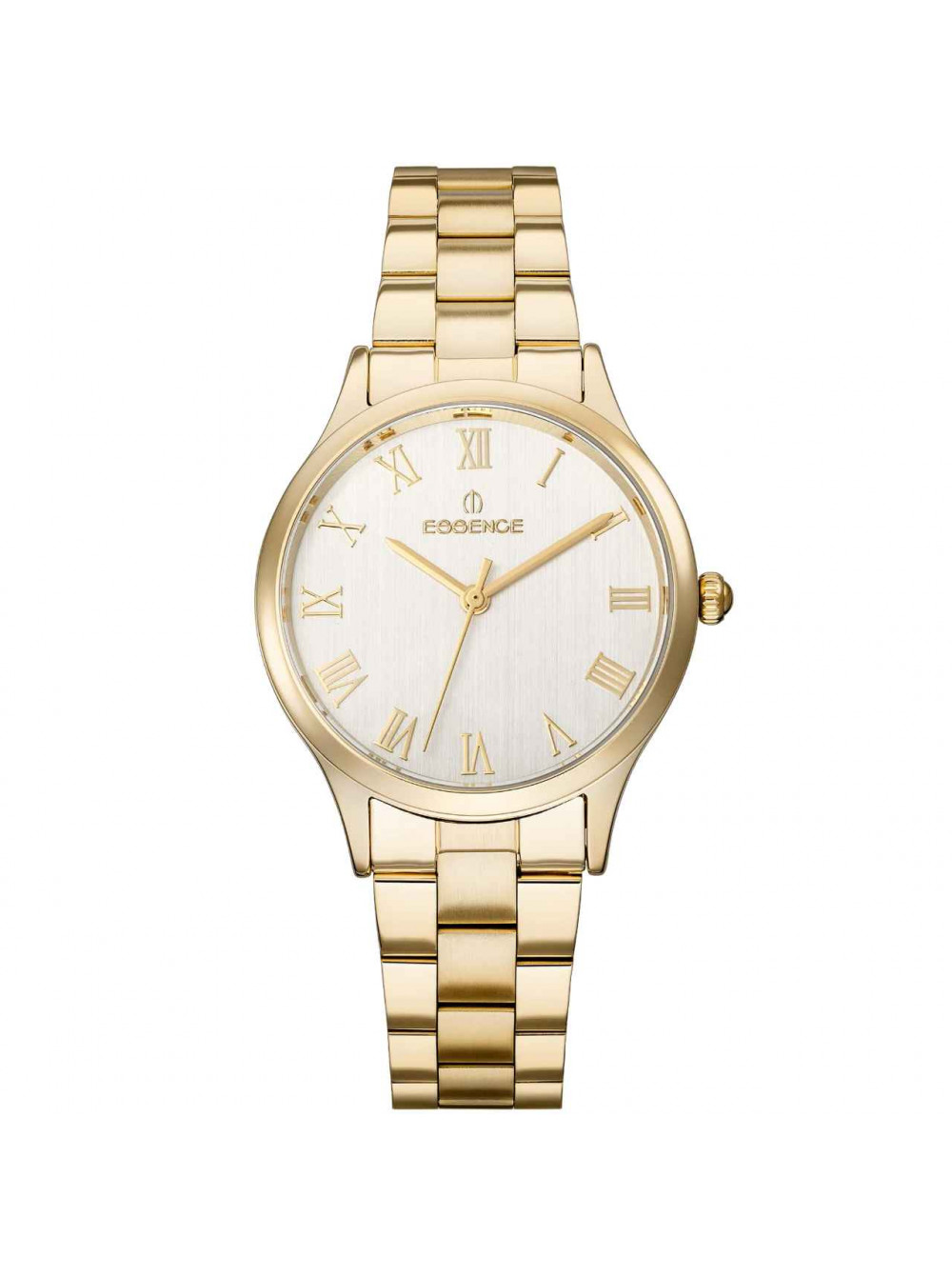 Наручные, кварцевые, женские часы Essence. Стальной корпус с IPG покрытием. Бежевый циферблат с римскими цифрами. Три стрелки. На браслете.