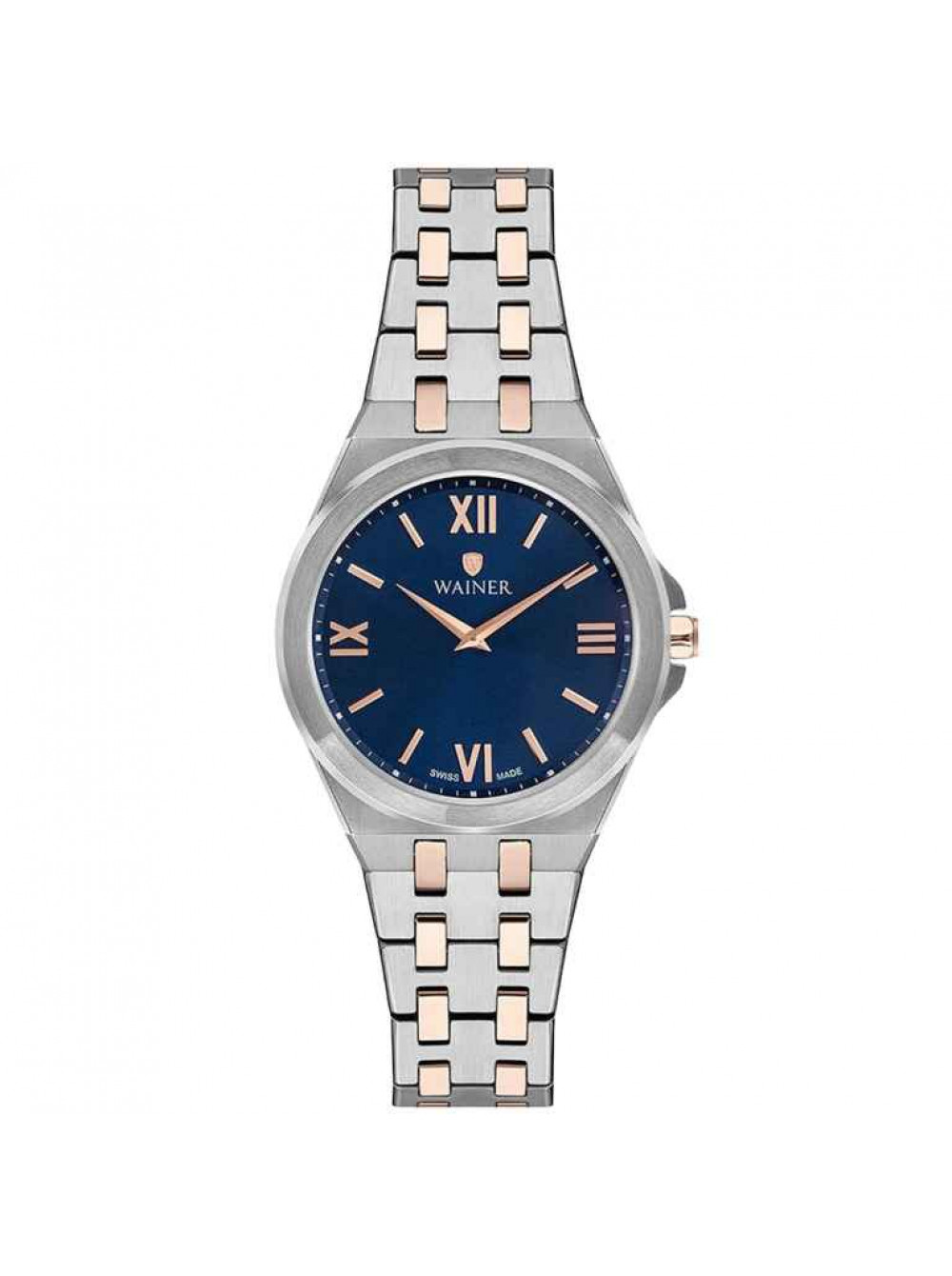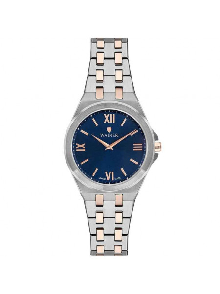 Швейцарские, наручные кварцевые часы WAINER. Синий циферблат. Корпус из нержавеющей стали. Минеральное стекло. На браслете