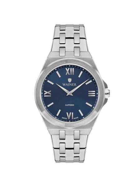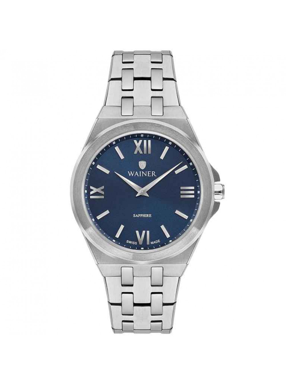 Швейцарские, наручные кварцевые часы WAINER. Синий циферблат. Корпус из нержавеющей стали. Сапфировое стекло. На браслете