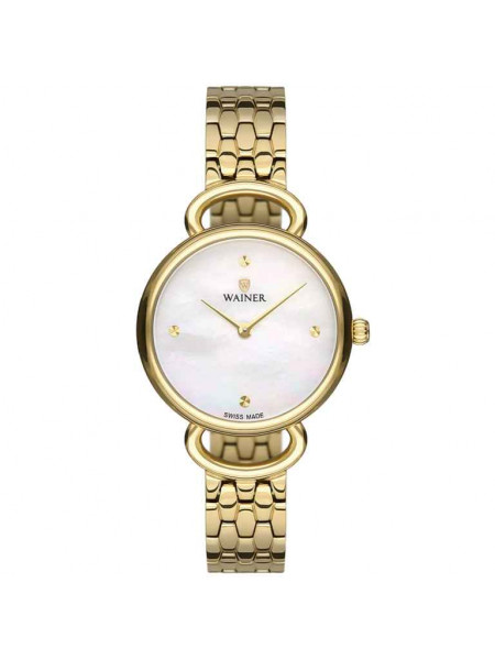 Швейцарские, наручные кварцевые часы WAINER. Циферблат - перламутр. Корпус из нержавеющей стали. Минеральное стекло. На браслете