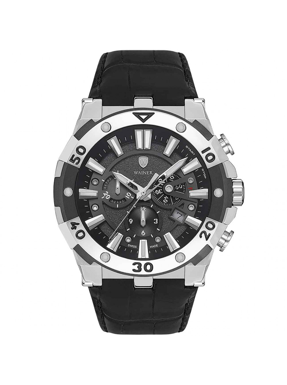 Швейцарские, наручные кварцевые часы WAINER. Корпус из нержавеющей стали. Дата, хронограф, люминесцентные стрелки и метки. Сапфировое стекло. На ремешке.