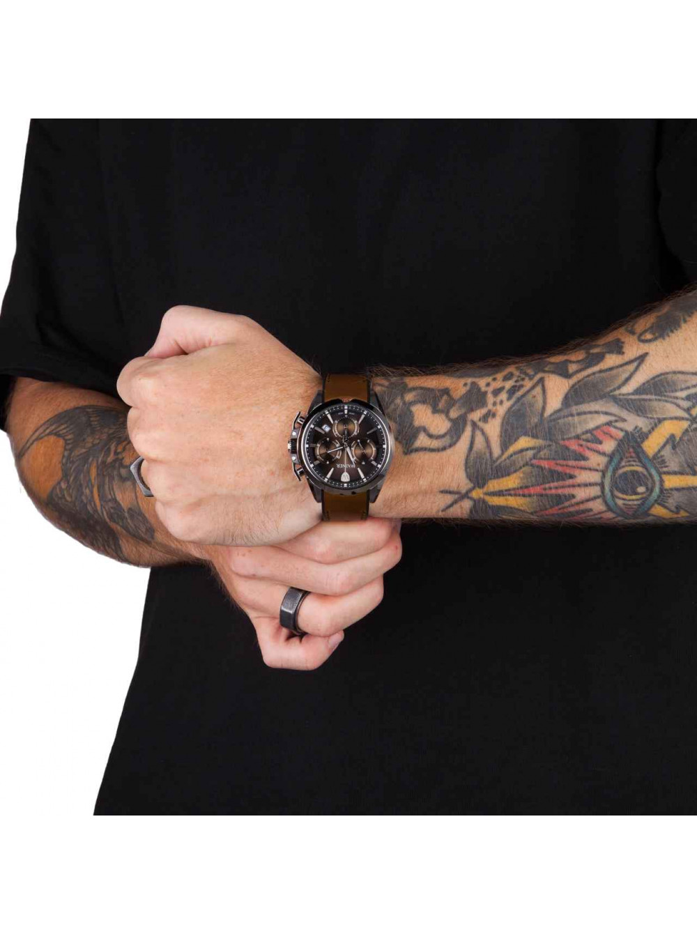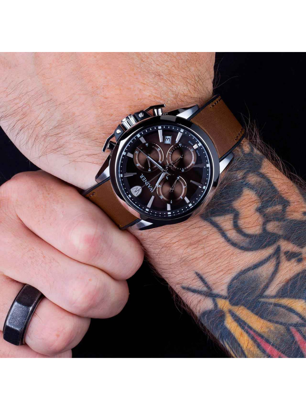 Швейцарские, наручные кварцевые часы WAINER. Коричневый циферблат. Дата, день недели, вынесенная секундная стрелка, хронограф. Корпус из нержавеющей стали. Сапфировое стекло. На ремешке.