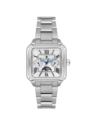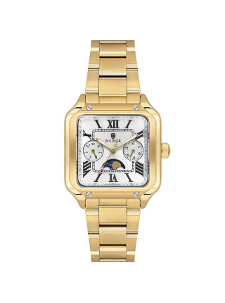 Швейцарские женские наручные кварцевые часы WAINER. Коллекция - VINTAGE. Корпус из нержавеющей стали с PVD покрытием. Дата, день недели, индикатор фазы луны. Сапфировое стекло. На браслете.