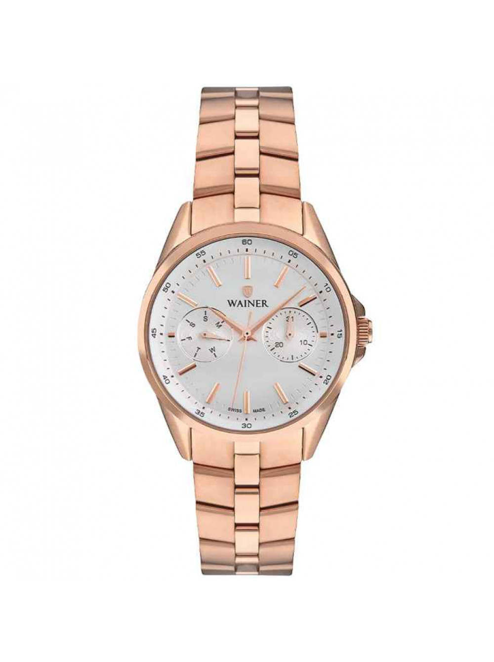 Швейцарские, наручные кварцевые часы WAINER. Корпус из нержавеющей стали. Минеральное с сапфировым покрытием стекло. На браслете.