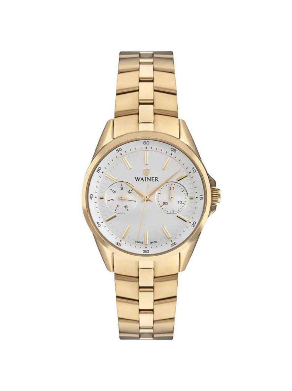 Швейцарские, наручные кварцевые часы WAINER. Корпус из нержавеющей стали. Минеральное с сапфировым покрытием стекло. На браслете.