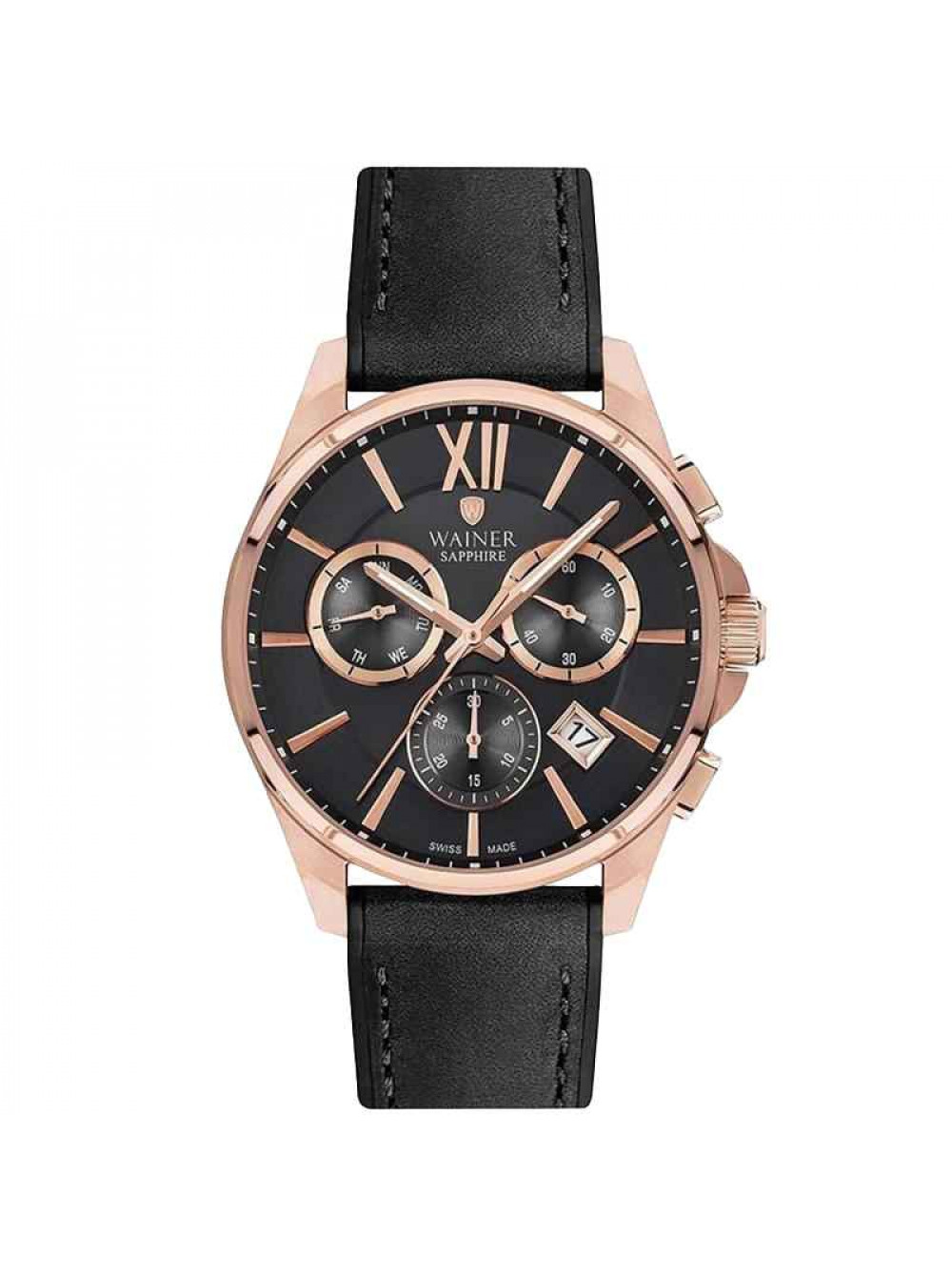 Швейцарские, наручные кварцевые часы WAINER. Корпус из нержавеющей стали. Дата, хронограф. Сапфировое стекло. На ремешке.