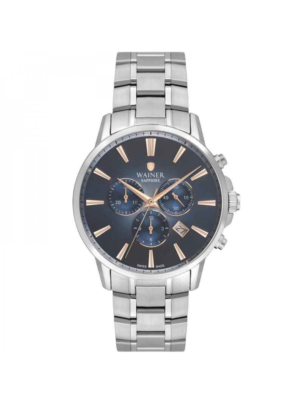 Швейцарские, наручные кварцевые часы WAINER. Корпус из нержавеющей стали. Дата, вынесенная секундная стрелка, хронограф. Сапфировое стекло. На браслете.