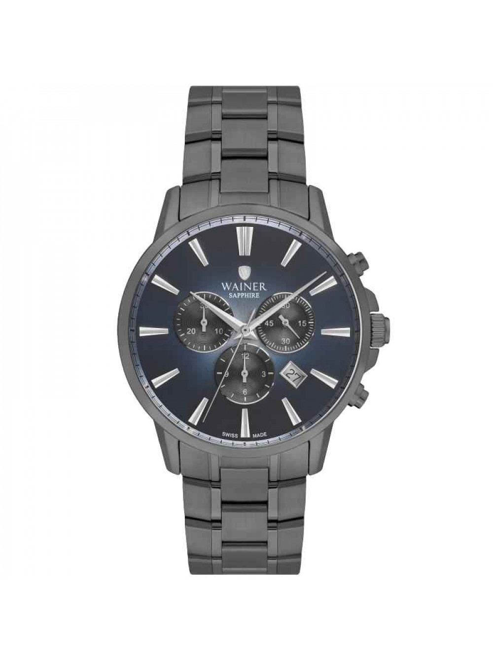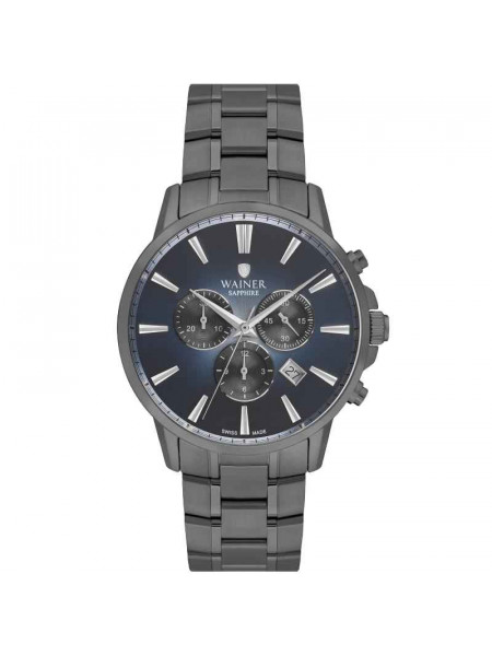 Швейцарские, наручные кварцевые часы WAINER. Корпус из нержавеющей стали. Дата, вынесенная секундная стрелка, хронограф. Сапфировое стекло. На браслете.