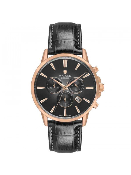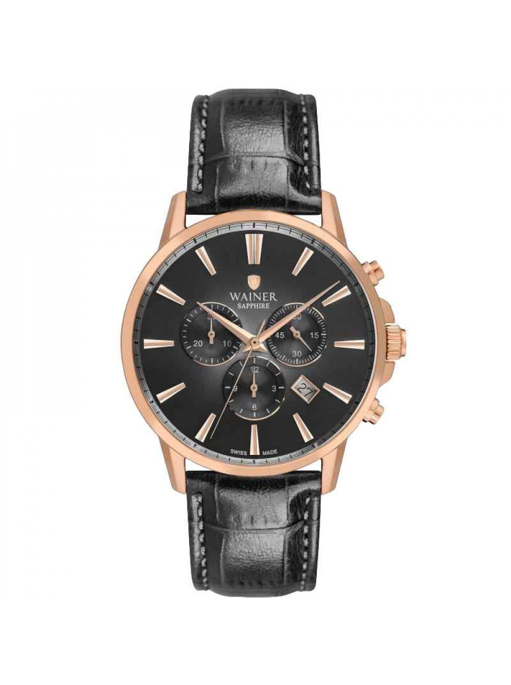 Швейцарские, наручные кварцевые часы WAINER. Корпус из нержавеющей стали. Дата, хронограф. Сапфировое стекло. На ремешке.
