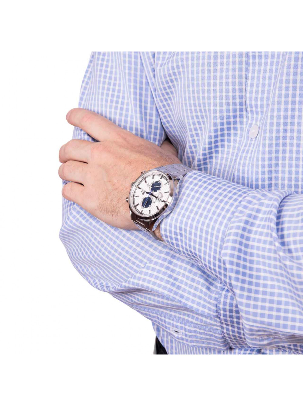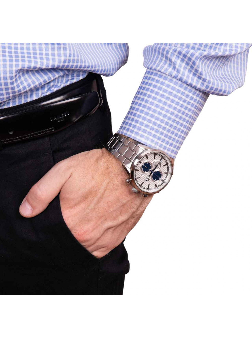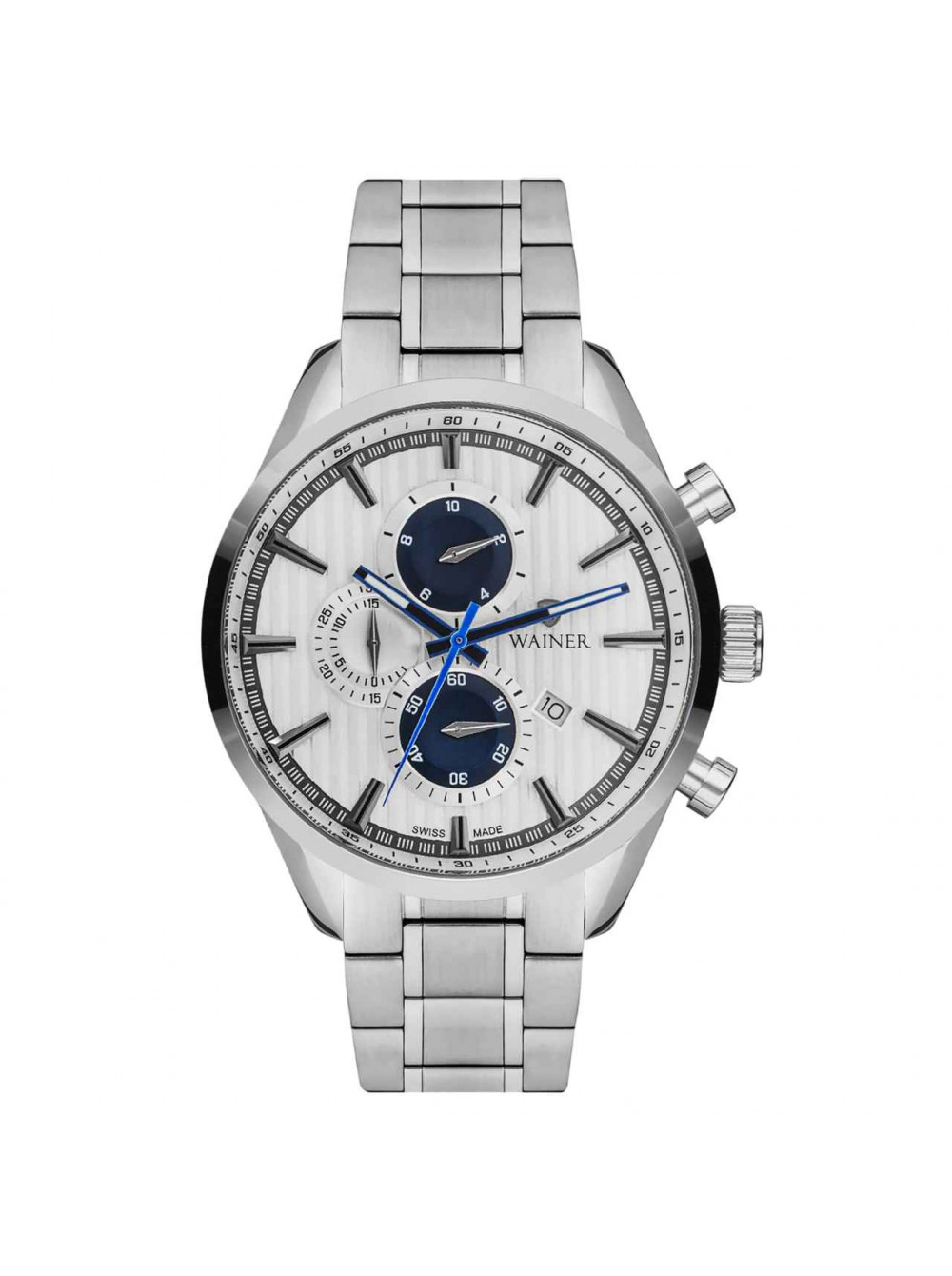 Швейцарские, наручные кварцевые часы WAINER. Корпус из нержавеющей стали. Дата, вынесенная секундная стрелка, хронограф, люминесцентные стрелки. Сапфировое стекло. На браслете.