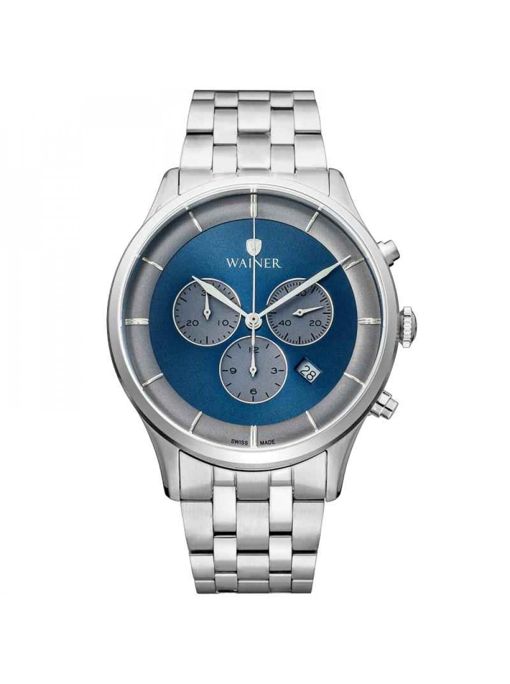 Швейцарские, наручные кварцевые часы WAINER. Корпус из нержавеющей стали. Дата, хронограф. Минеральное стекло. На браслете.