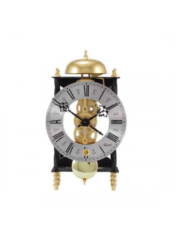 Механические настольные часы HERMLE. Материал - латунь, железо. Расцветка - черный и желтый. Размер 24*13*9,5 см. Длительность завода 14 дней. Бой - один удар в колокол каждый час. Регулятор - маятник. Механизм - скелетон