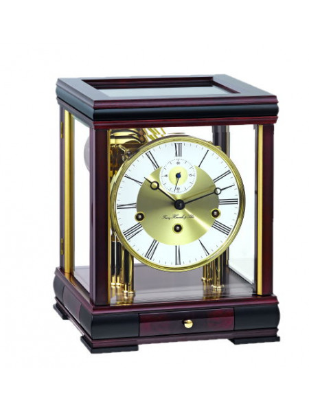 Классическая коллекция HERMLE - элегантные настольные часы из полированного массива вишни. Материал дерево. Расцветка - махагон (красное дерево). Размер 25*30*21 см. Оригинальный дизайн позволяет наблюдать высочайшее качество используемых материалов и работу механизма с любой стороны. Отдельный ящичек для хранения ключа. Механика с подзаводом на 8 дней. Бой каждый час по количеству полных часов, мелодия каждую четверть часа. Регулятор - анкерный ход. Автоматическое отключение боя и мелодии на ночь.