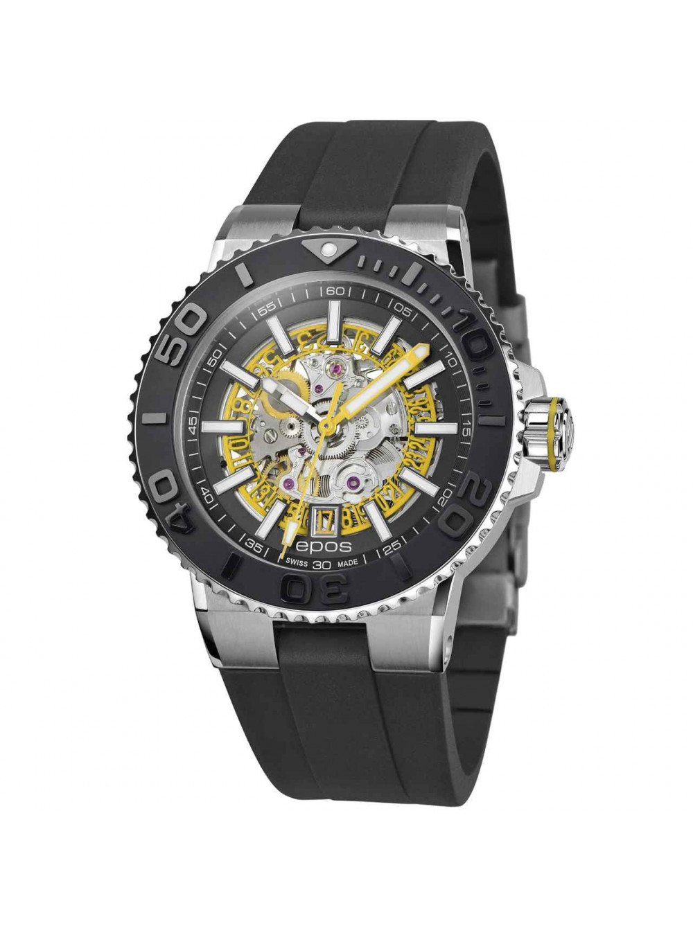 Оригинальная стальная переводная (заводная) головка - винтовая, с желтым ободком, для часов EPOS.